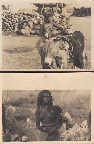 Tre fotografie in bianco e nero di cm. 24x18, raffiguranti tre soggetti femminili. Scatti sicuramente del periodo coloniale. Maldestri piccoli forellini nella parte centrale alta per appendere.