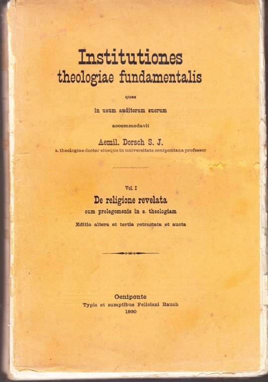 Institutiones theologiae fundamentalis Vol. I: De religione revelata cum prolegomenis in s. theologiam