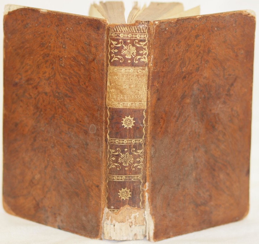In 16. Dim. 17,5x10,5 cm. Pp. XI+456. Edizione del 1815 di questa interessante opera di pedagogia scritta da Charles Gobinet. Il volume inizia alla virtu e le preghiere, la lettura dei libri, giochi e cattive compagnie. L'opera è in un volume ed è completa. Tra gli argomenti trattati: Obblighi, mali che vengono dalla morte, peccati, demoni, preghiera, confessione, preghiere del mattino e della sera, assistenza alla Messa, Angelo custode, feste e domeniche, tentazioni, amore di Dio, docilità, castità, pudore, molestie, scelta dello stato di vita ecc. In buone condizioni. Copertina in piena pelle coeva con titolo e decorazioni in oro al dorso in buone condizioni generali con usure e parti mancanti ai margini e dorso. Piatto anteriore in parte staccato. Legatura in buone condizioni. All'interno le pagine si presentano in buone condizioni con rare fioriture. Bruniture. Edition of 1815 of this interesting work of pedagogy written by Charles Gobinet. The volume is a guide to vitues and prayers, readings of books, games and bad companies. The work is in one volume and it is complete Between the issues treated: Obligements, bad things from death, pities, demons, prayers, confession, prayers of morning and evening, assistance to Mass, feast and sundays, temptations, love of God, chastity, shame, violences, choice and state of life ecc. In good conditions. Full leather coeval cover with golden title and decorations in the spine in good general conditions with wearings and missing parts in the edges and spine. Front plate partially detached. Binding in good conditions. Inside pages are in good conditions with occasional foxings. Yellowings.