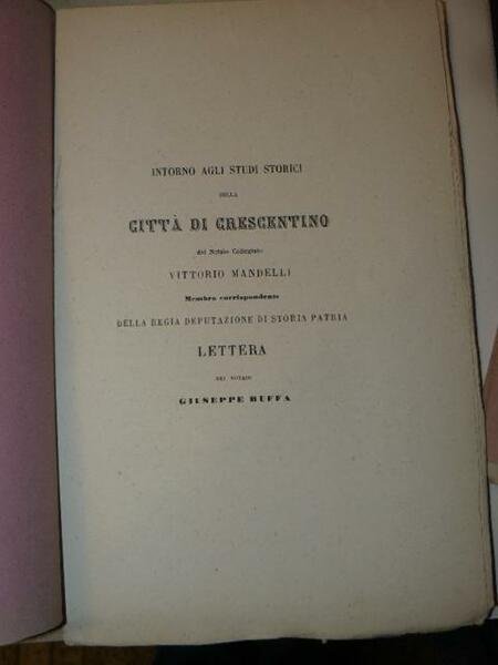 Intorno agli studi storici sulla città di Crescentino del Notaio Collegiato Vittorio Mandelli membro corrispondente della Regia deputazione di storia patria. Lettera del Notaio Giuseppe Buffa