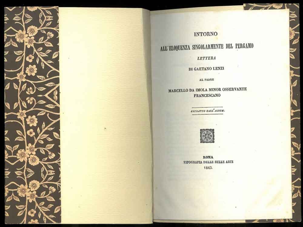 Intorno all'eloquenza singolarmente del Pergamo. Lettera di Gaetano Lenzi al padre Marcello da Imola Minor Osservante Francescano. Estratto dall'album.