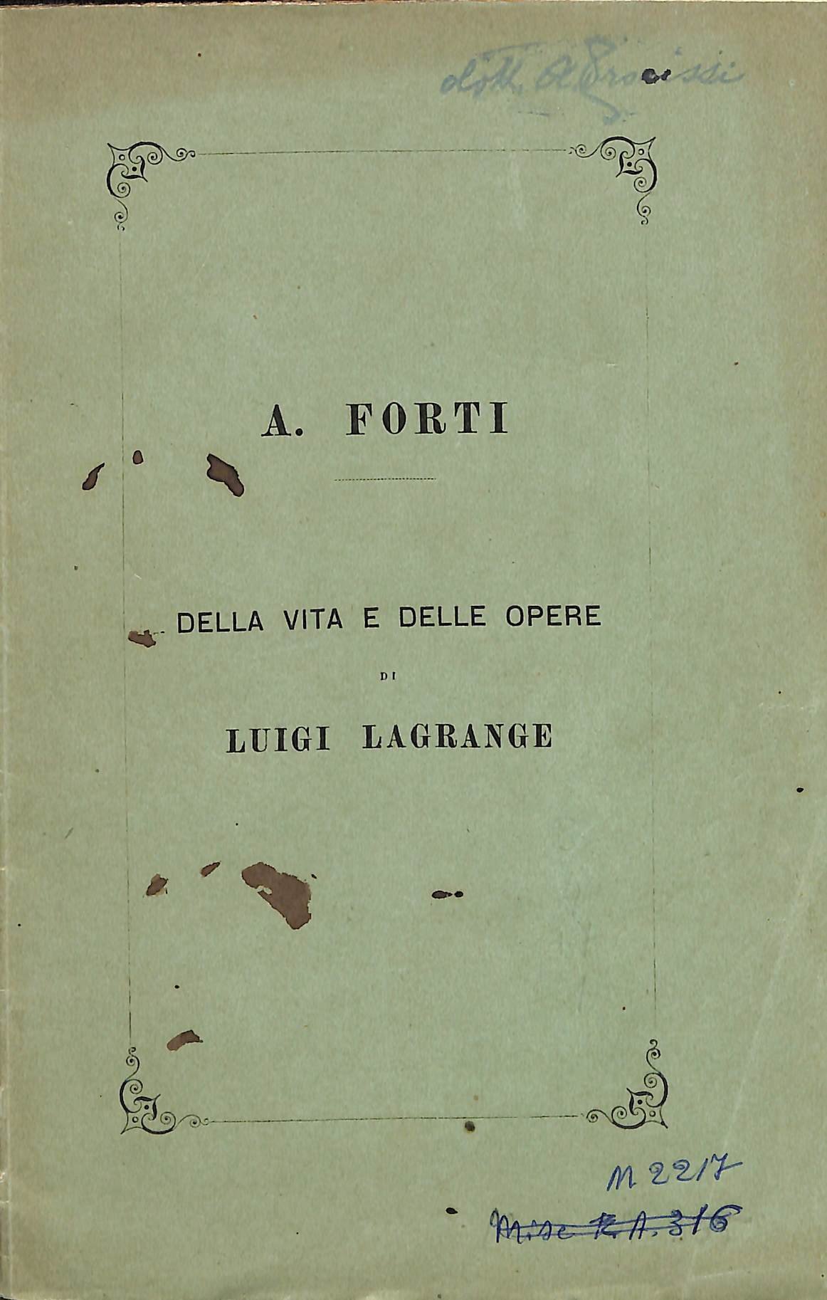 Intorno alla vita e alle opere di Luigi Lagrange