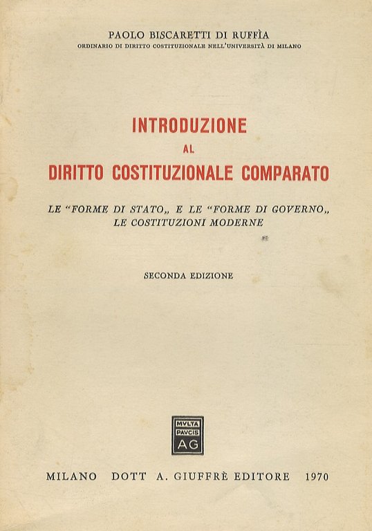 Introduzione al diritto costituzionale comparato. Le “forme di Stato” e le “forme di Governo”. Le Costituzioni moderne. Sesta edizione interamente riveduta.