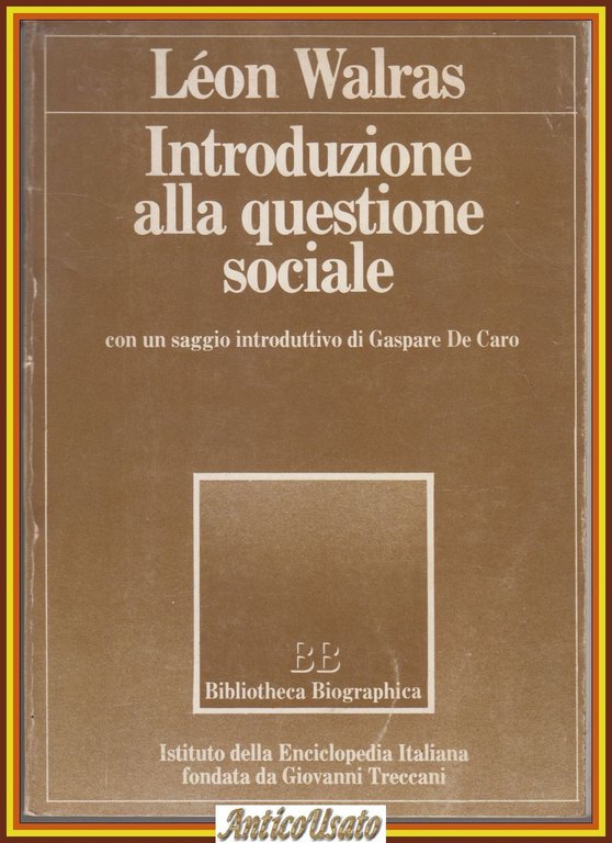 INTRODUZIONE ALLA QUESTIONE SOCIALE di Leon Walras 1980 Istituto Treccani