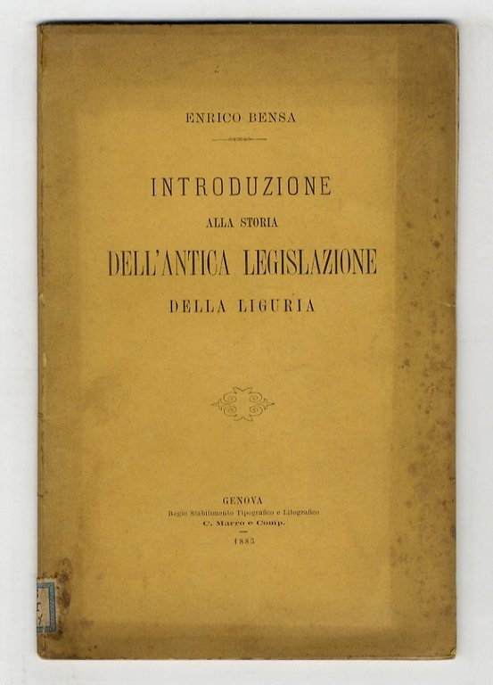 Introduzione alla storia dell'antica legislazione della Liguria.