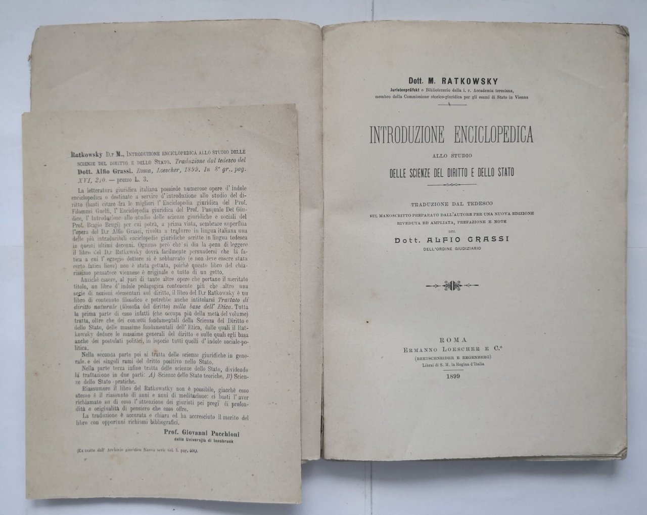 INTRODUZIONE ENCICLOPEDICA ALLO STUDIO DELLE SCIENZE DEL DIRITTO E DELLO STATO di M. Ratkowsky.