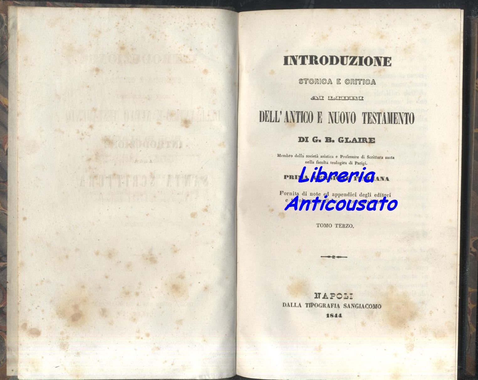 INTRODUZIONE STORICA CRITICA ANTICO NUOVO TESTAMENTO Tomo 3 Glaire 1844 Libro