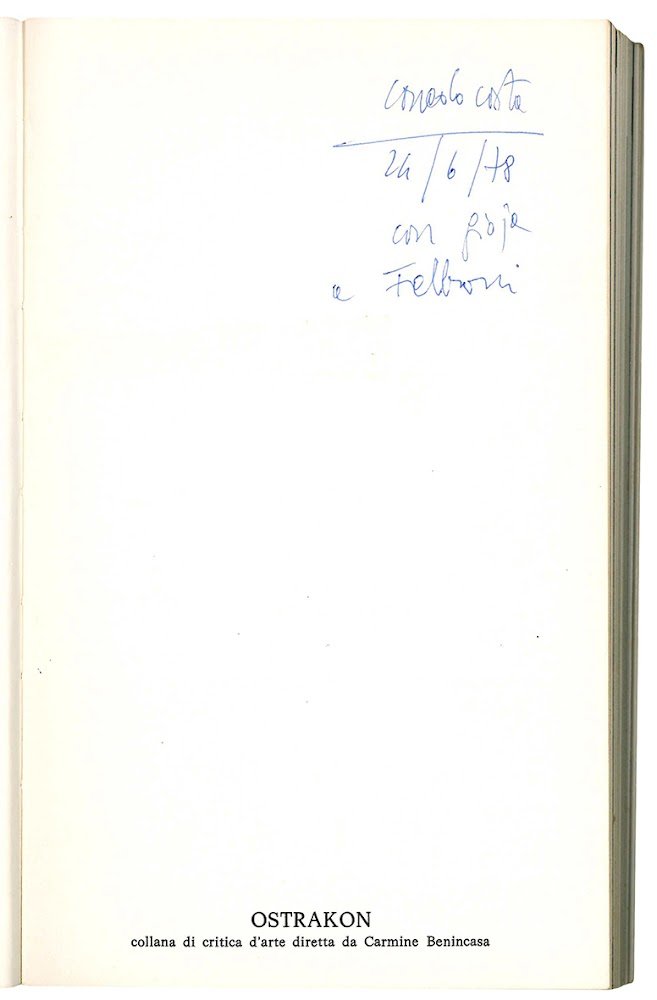 210x130 mm. 199 pp. Original illustrated wrappers. From the series Ostrakon edited by Carmine Benincasa. Copy signed by the author. First edition.