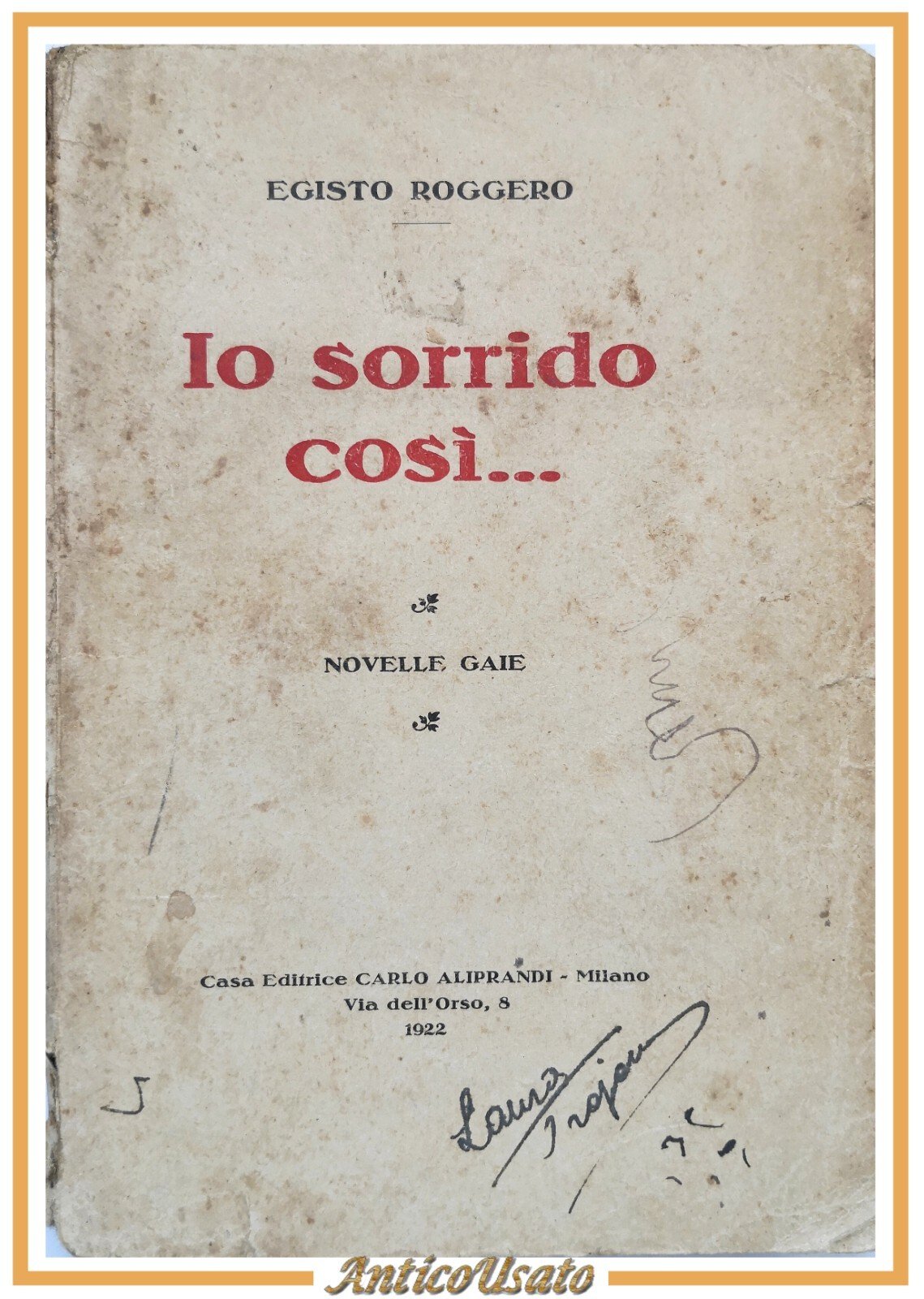 IO SORRIDO COSI novelle gaie di Egisto Roggero 1922 Carlo Aliprandi Libro