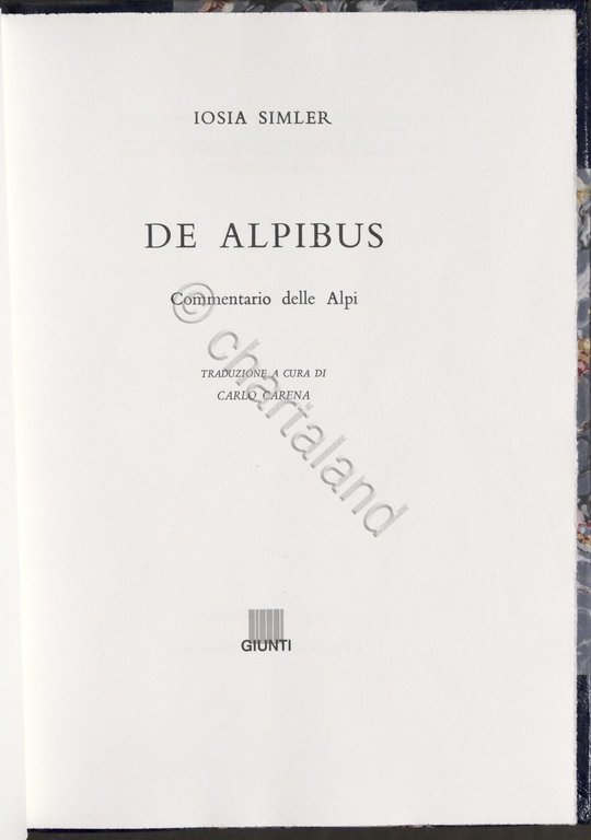 Iosia Simler - De Alpibus - Commentario delle Alpi - ed. 1990 Pag. XXIV, 126 Elegante Legatura in mezza pelle - Testo in italiano. Condizioni molto buone.