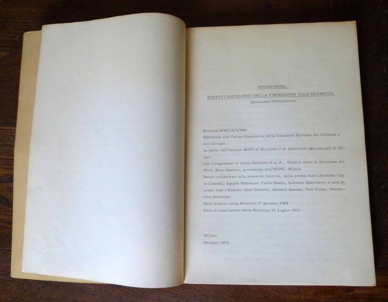 IRIPSIstituto di ricerche e di interventi psico-sociali.PROBLEMI PSICOLOGICI DELLA FORMAZIONEALLA SICUREZZA LAVORATIVA.Milano 1972,brossura, 29,5x21 cm., pp.108,peso: g.600cod.9920CONDIZIONI DEL LIBRO: buone,imperfezioni alla copertina,strappetti al dorso