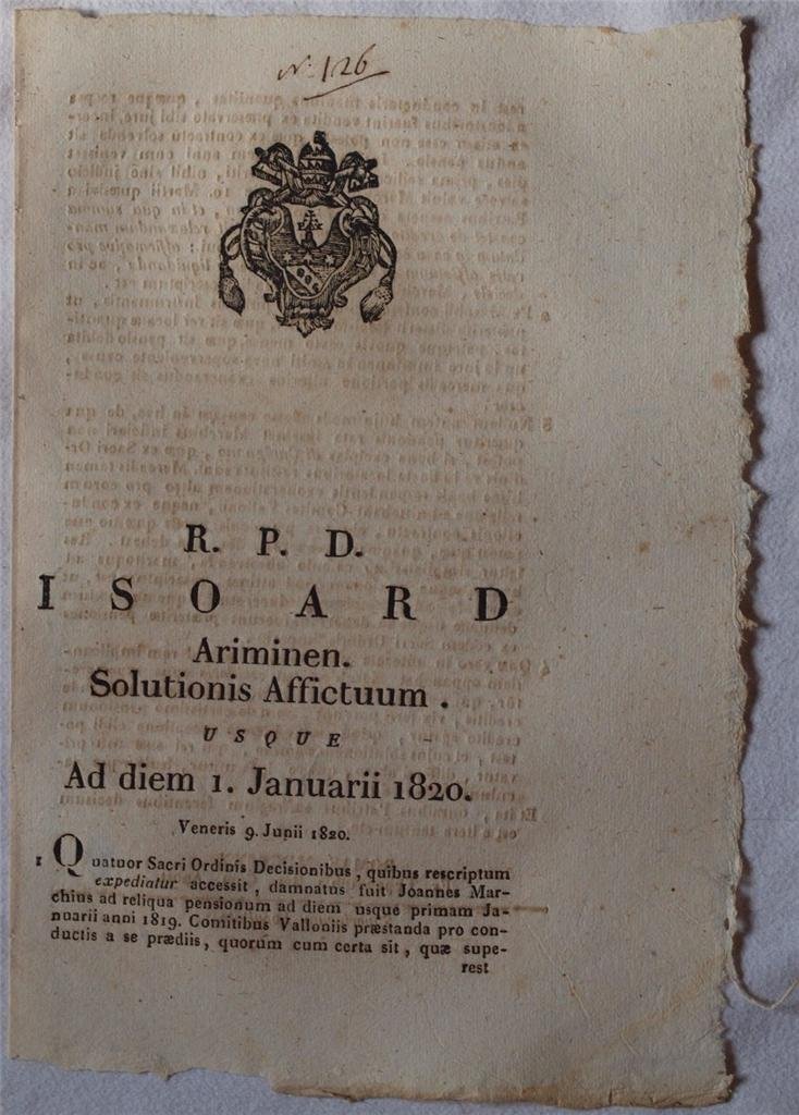 ISOARD ARIMINEN SOLUTIONIS AFFLICTUUM USQUE AD DIEM 1 JANUARII 1820 VENERIS 9 JUNII 1820
