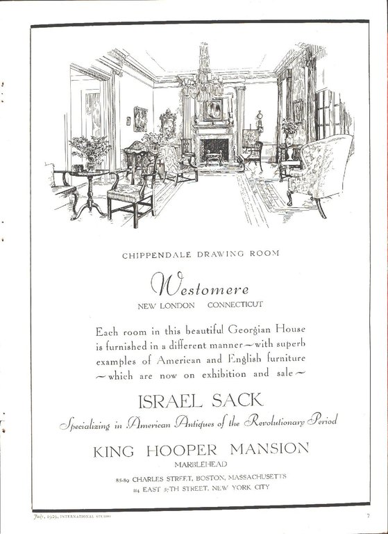 Israel Sack specializing in American Antiques. Pubblicità 1930