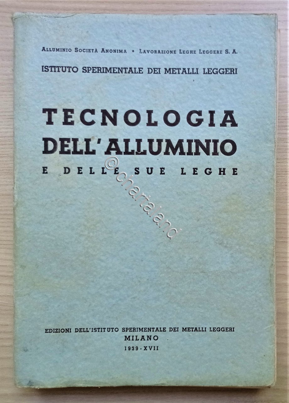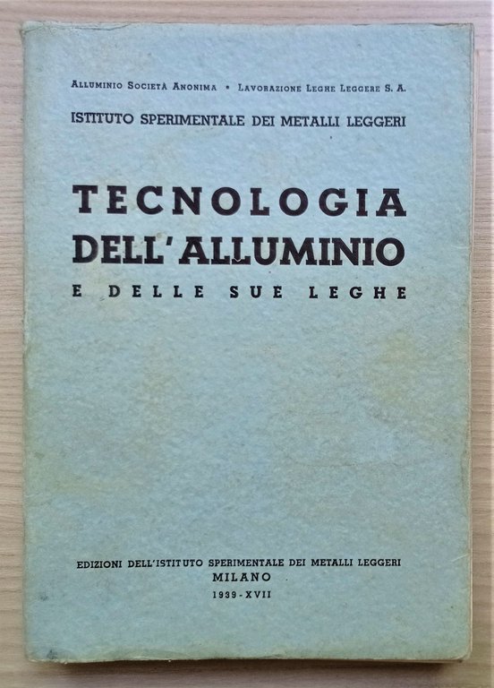 Istituto sperimentale dei metalli leggeri - Tecnologia dell'alluminio e delle sue leghe - ed. 1939 Testo in lingua italiana. Pagine XII, 262 con illustrazioni e tavole. Copertina morbida. Condizioni molto buone.