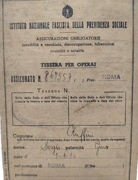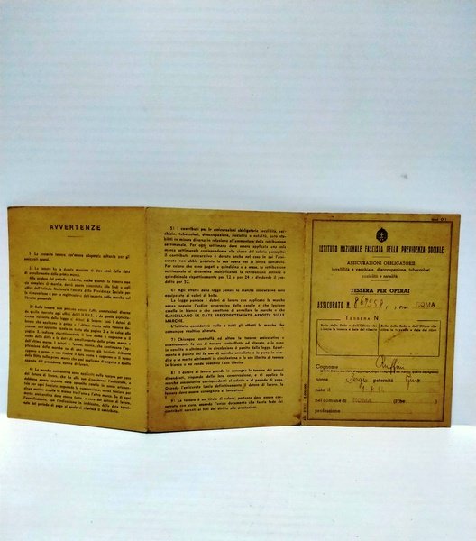 ISTITUTO NAZIONALE FASCISTA DELLA PREVIDENZA SOCIALE .tessera per gli operai