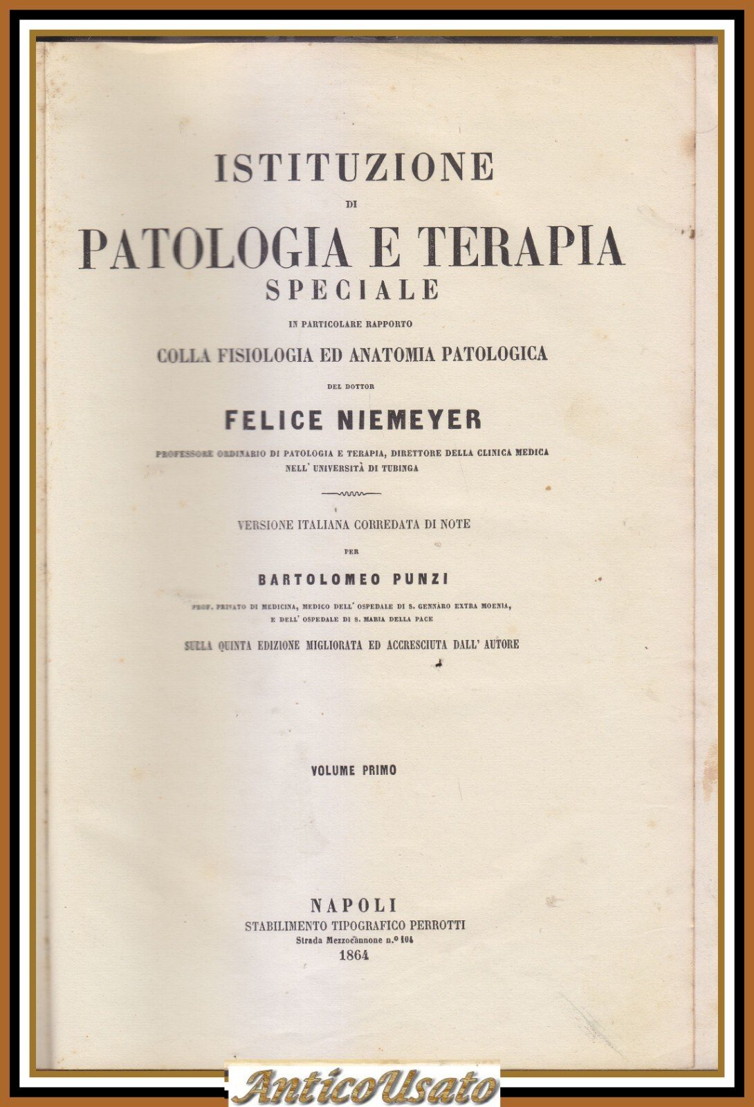 ISTITUZIONE DI PATOLOGIA E TERAPIA SPECIALE Felice Niemeyer 2 volumi 1864 Libro