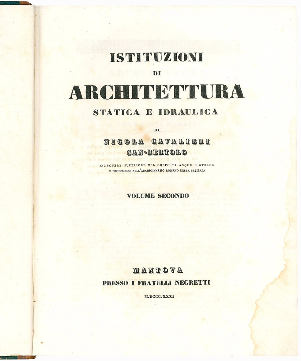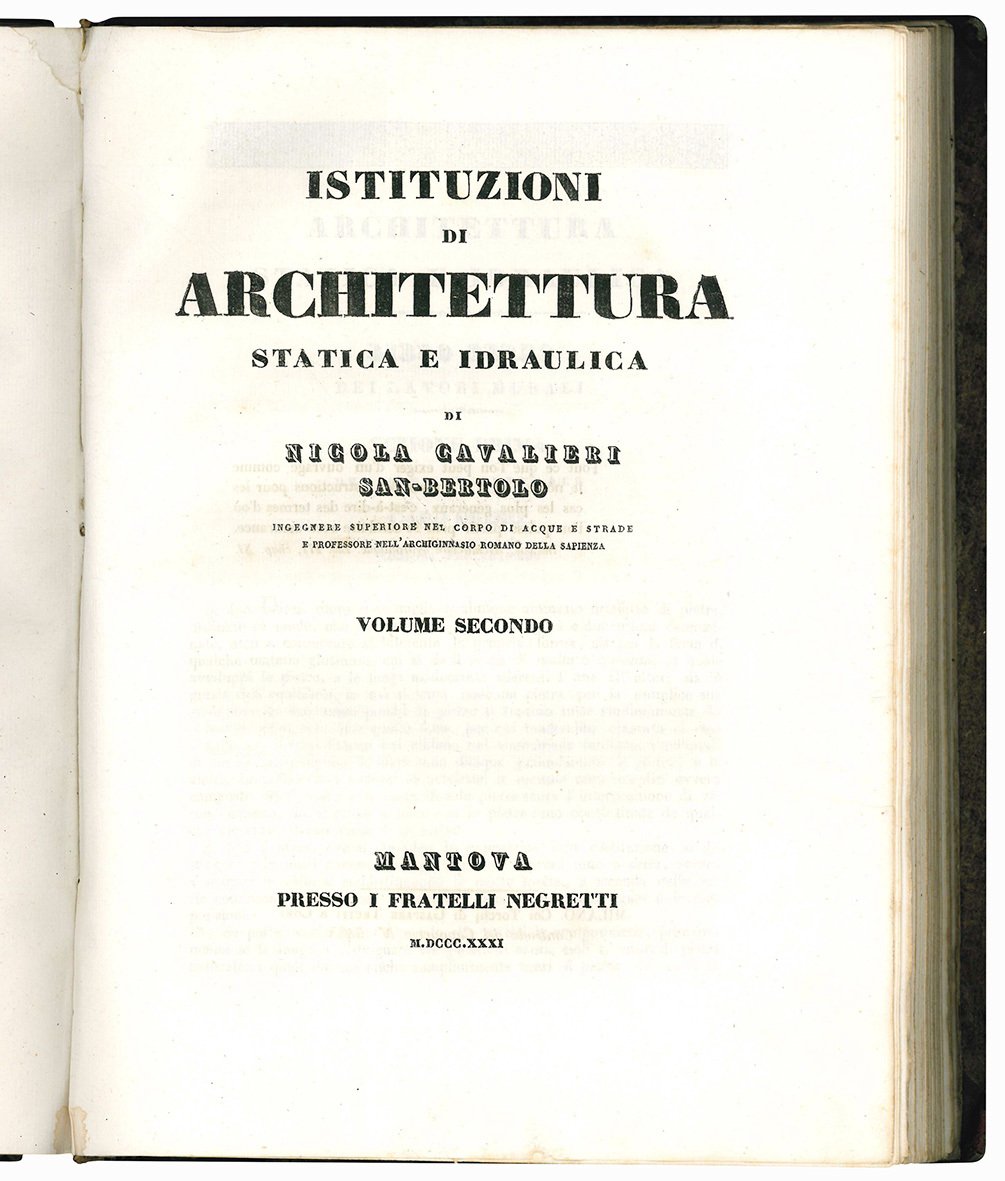 Istituzioni di architettura statica e idraulica. Volume primo [-secondo]