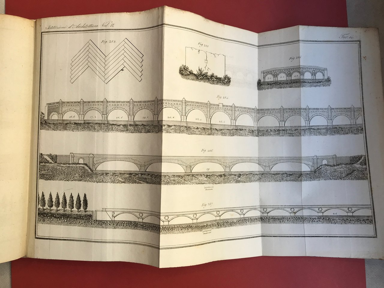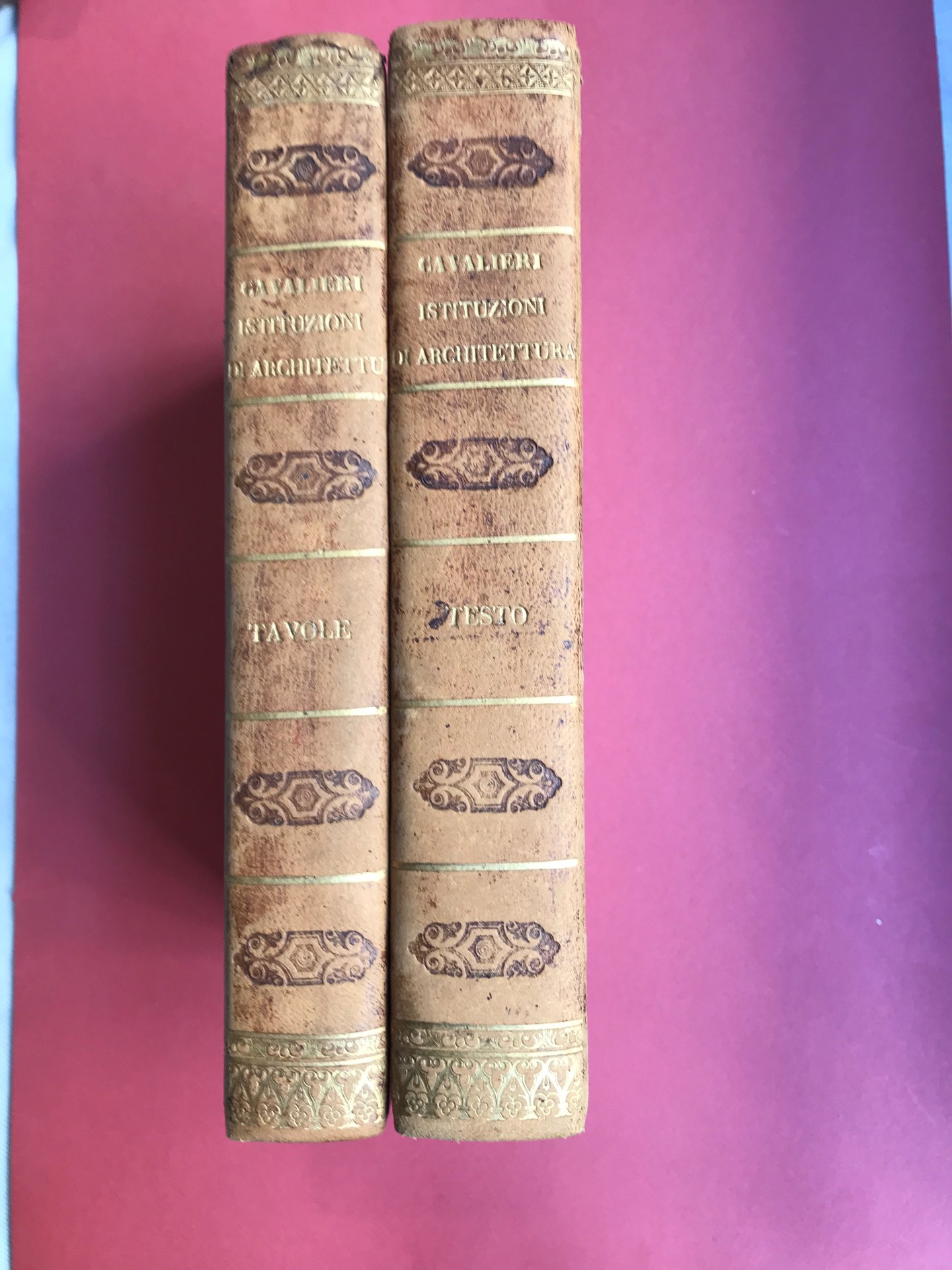 4 voll. in due tomi in 4°, pp. (34),268,(14); 430, (14), 35 + 32 tavv. inc. f.t. più voplte rip., legature in mezza pelle coeva, titolo in oro e fregi a secco al dorso. Timbro di biblioteca privata al frontespizio. Ottimo esemplare.