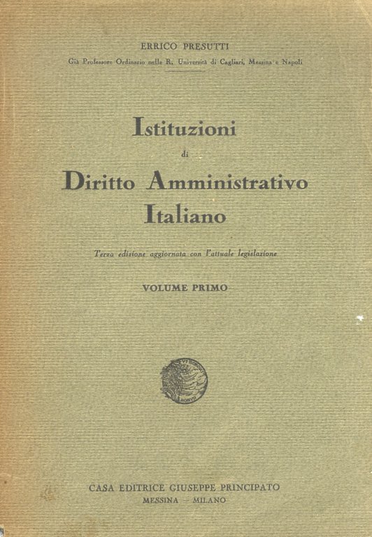 Istituzioni di diritto amministrativo italiano. Terza edizione aggiornata con l'attuale legislazione.