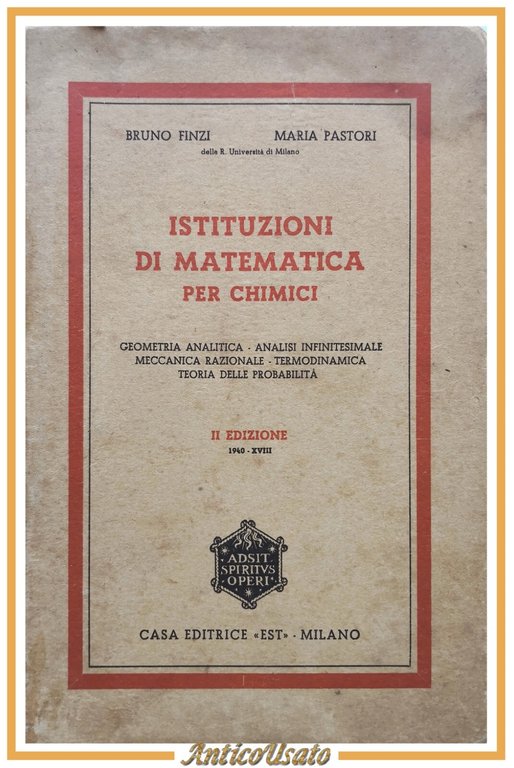 ISTITUZIONI DI MATEMATICA PER CHIMICI Bruno Finzi e Maria Pastori 1940 EST libro