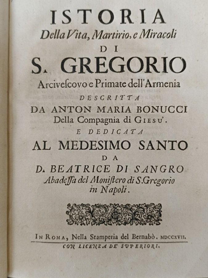 Istoria della vita, martirio, e miracoli di s. Gregorio arcivescovo e primate dell'Armenia.