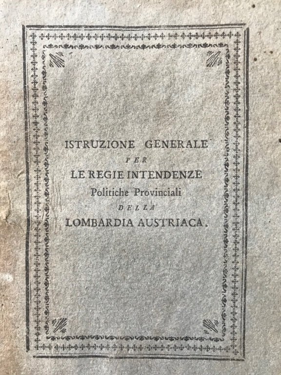 Istruzione generale per le Regie Intendenze Politiche Provinciali della Lombardia Austriaca.