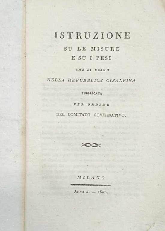Istruzione su le misure e su i pesi che si usano nella Repubblica Cisalpina pubblicata per ordine del Comitato Governativo.