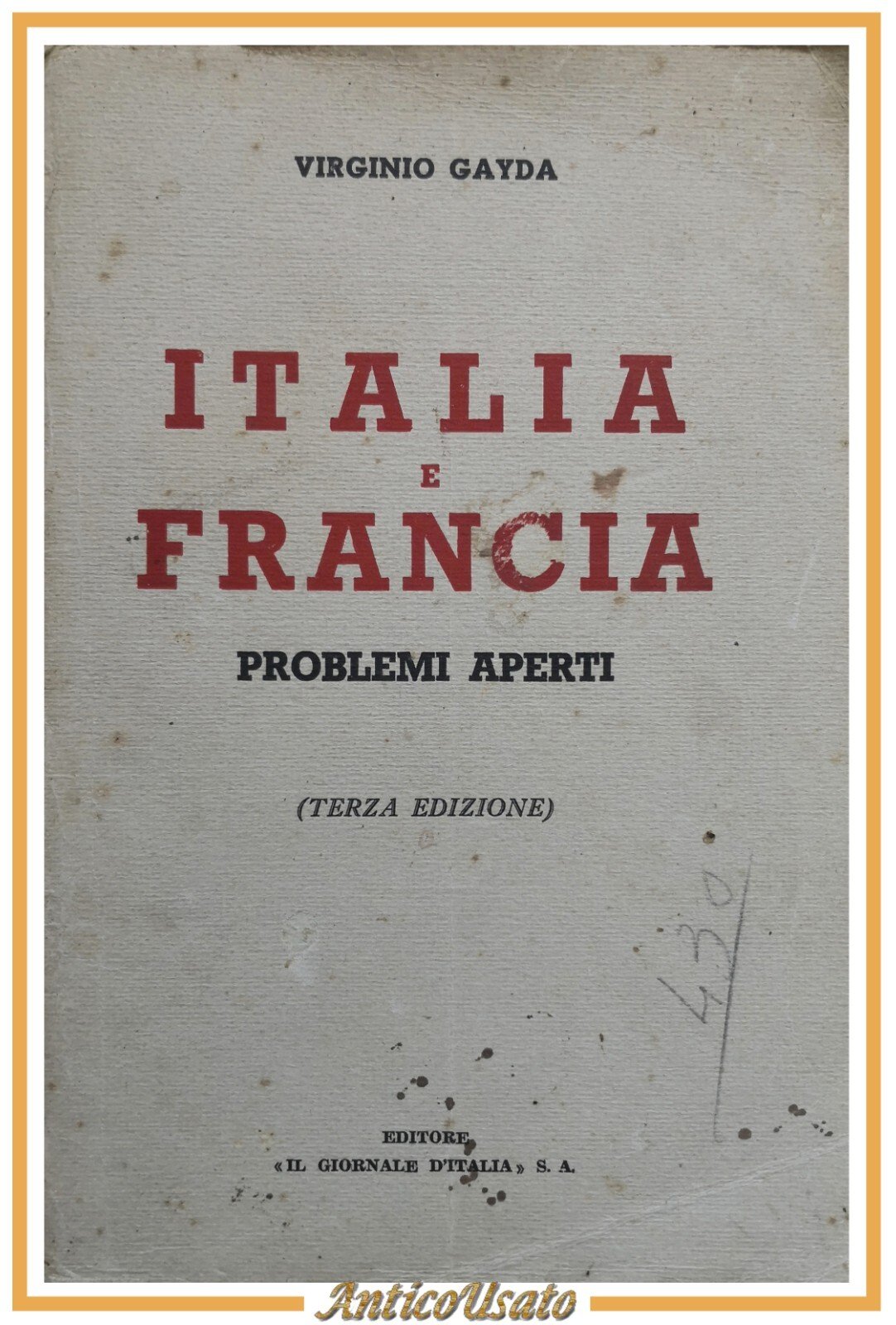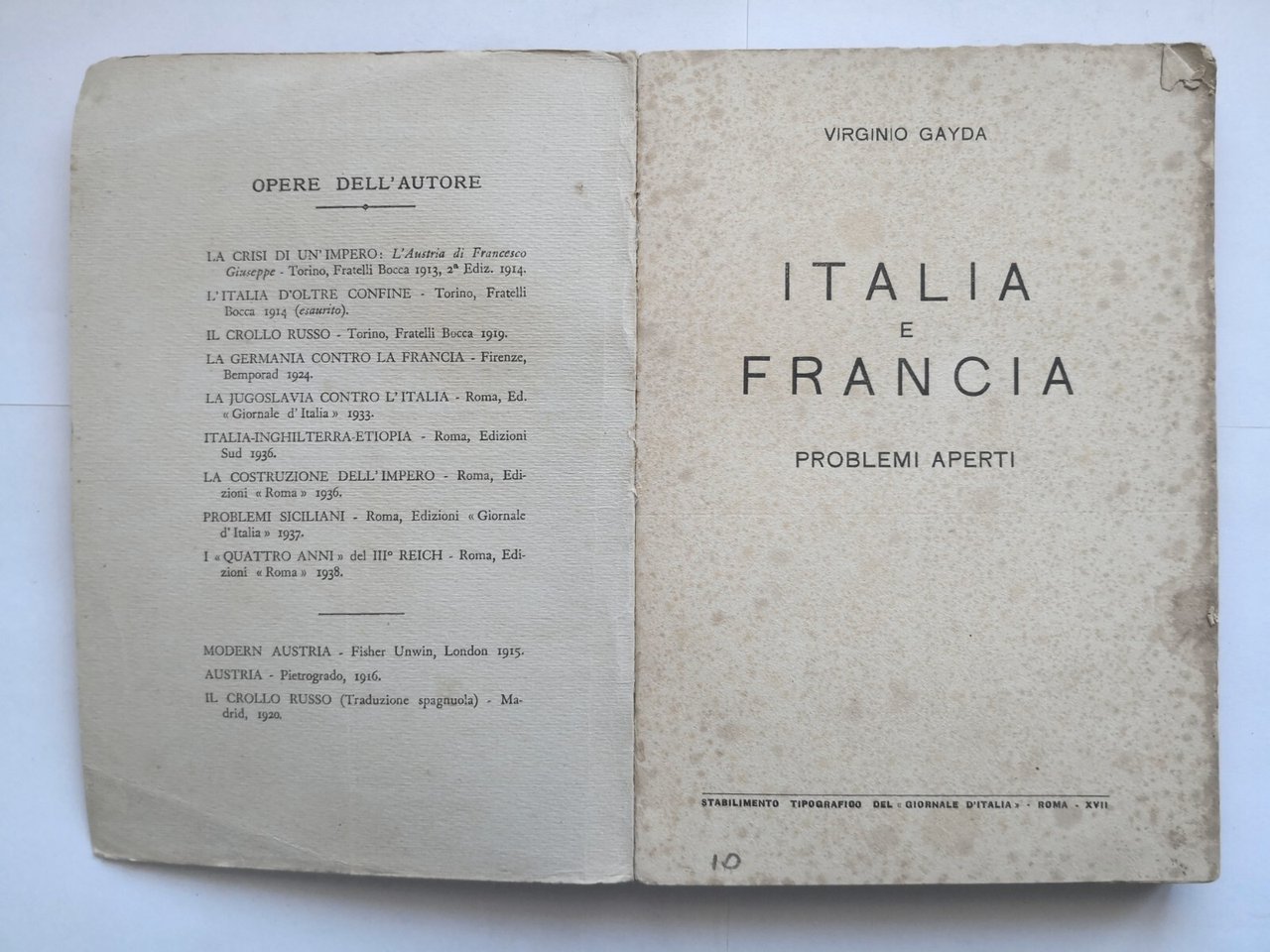ITALIA E FRANCIA PROBLEMI APERTI di Virginio Gayda 1938 Giornale d'Italia Libro