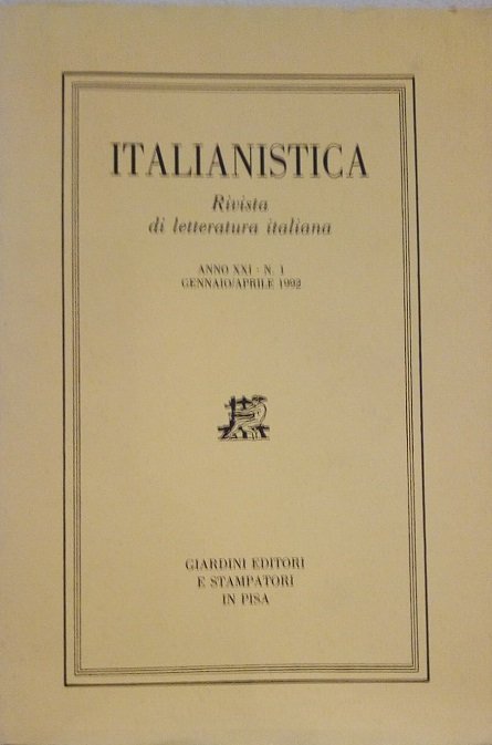 ITALIANISTICA - RIVISTA DI LETTERATURA ITALIANA - ANNO XXI, 1, GENNAIO/APRILE 1992