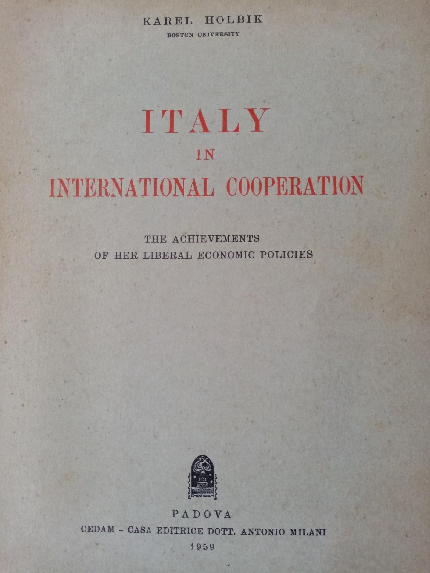 ITALY INTERNATIONAL COOPERATION. THE ACHIEVEMENTS OF HER LIBERAL ECONOMIC POLICIES