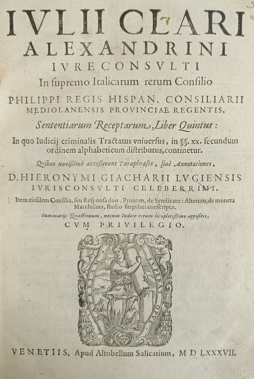 IULII CLARI ALEXANDRINI IURECONSULTI IN SUPREMO ITALICARUM RERUM CONSILIO (...)