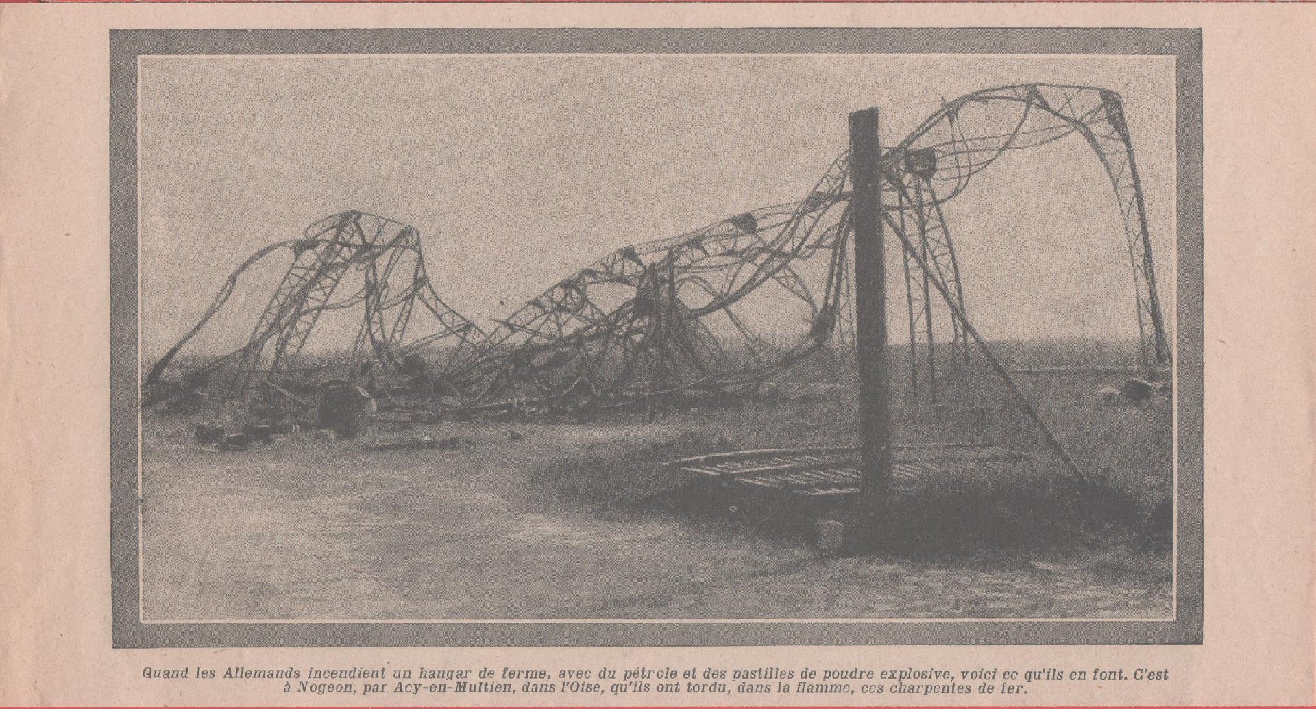 IWW. Les Allemands incedient un hangar a Nogeon par Acy en Multien (Oise) 1914