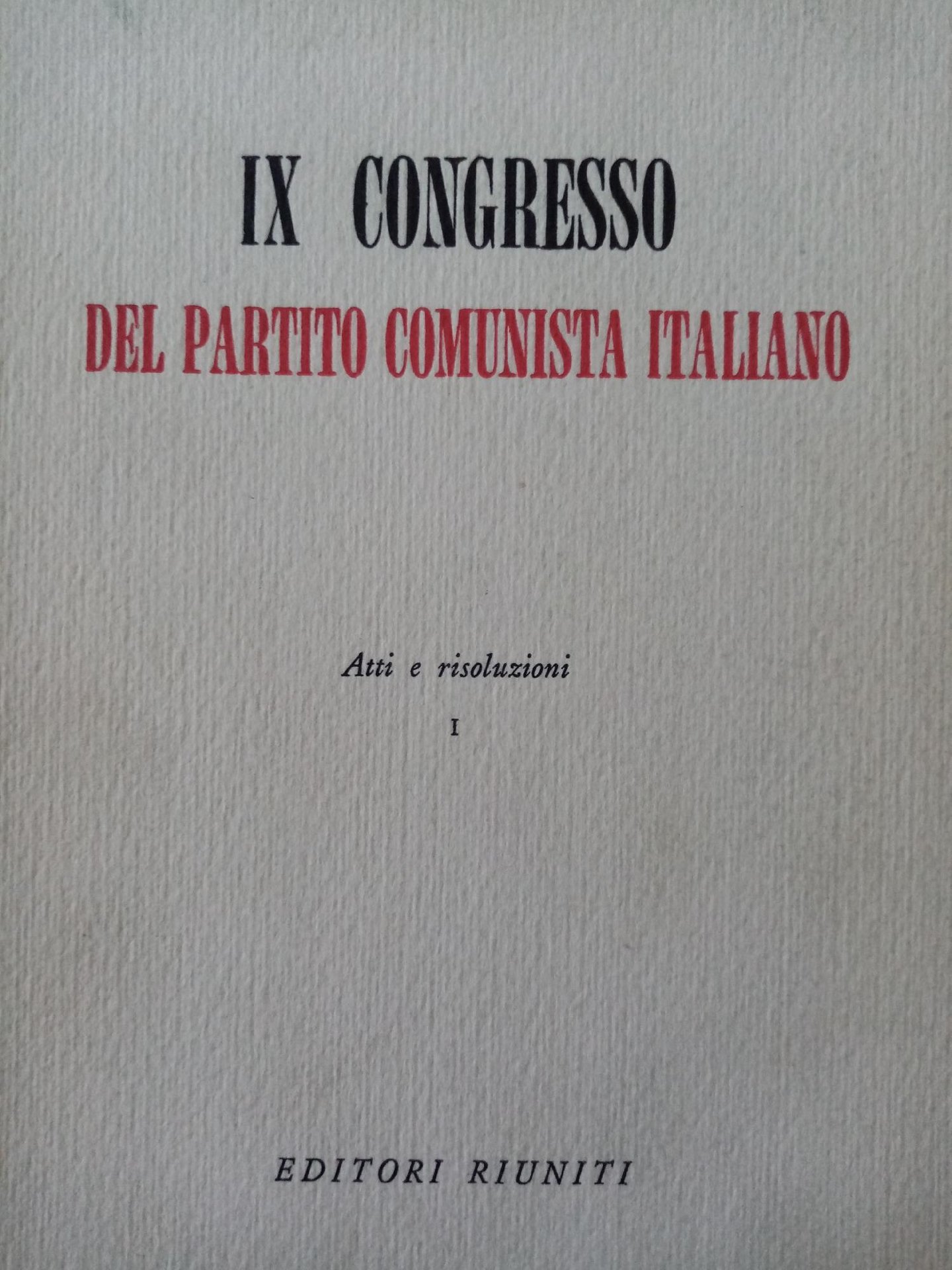 IX CONGRESSO DEL PARTITO COMUNISTA ITALIANO. ATTI E RISOLUZIONI. vol. 1