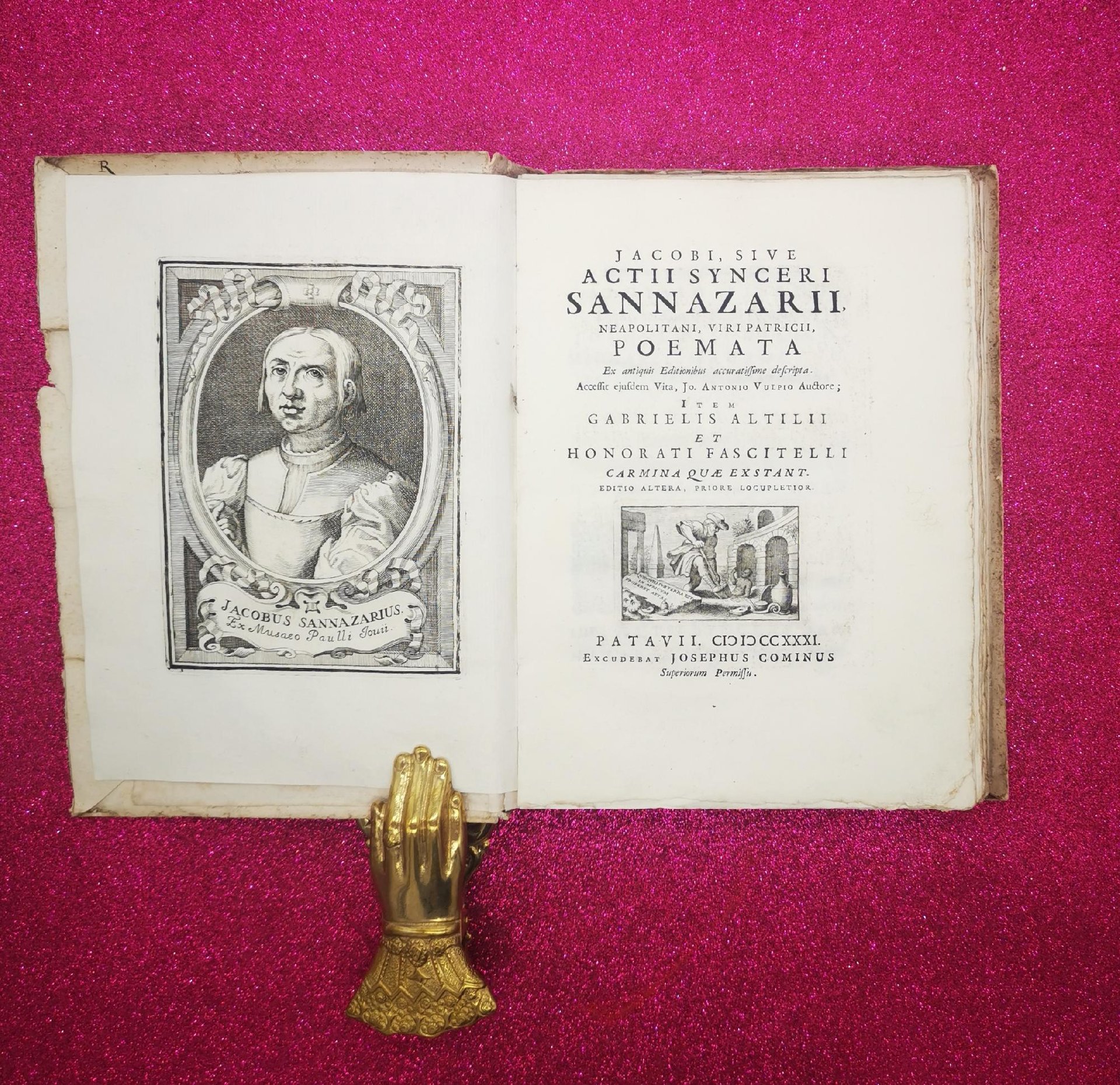 JACOBI, SIVE ACTII SINCERI SANNAZARII NEAPOLITANI VIRI PATRICII POEMATA ECC� PATAVII JOSEPH COMINUS 1731** RITRATTO ALL�ANTIPORTA INCISO CAPILETTERE INCISIFINALE CON STEMMA. CARTONATO COEVO. PERFETTE CONDIZIONI
