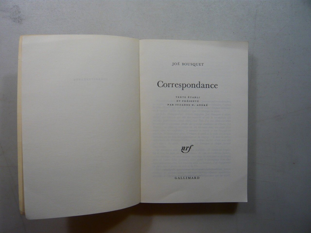 Joe Bousquet,CORRESPONDANCE,Gallimard, 1969[Suzanne N. André
