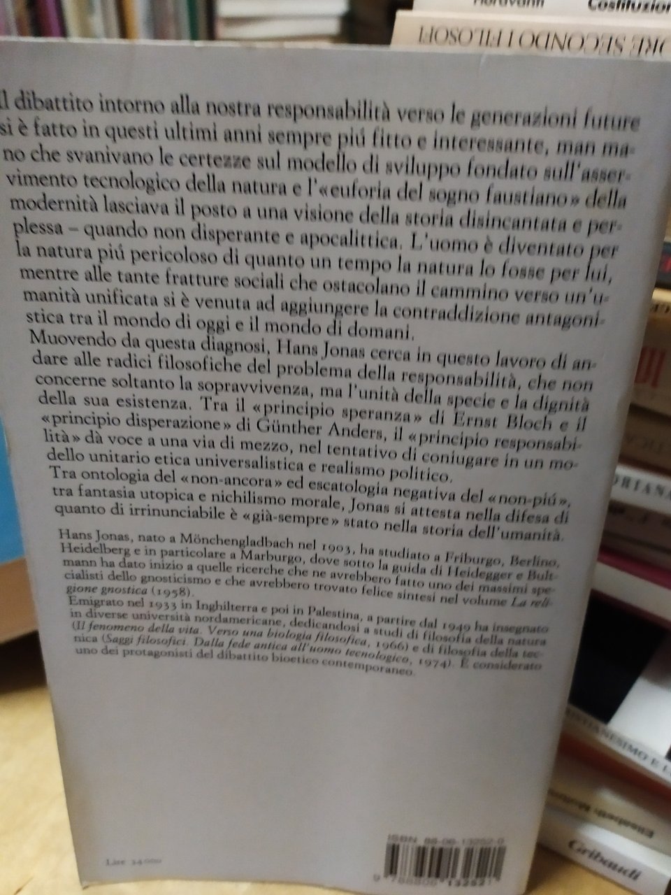 jonas il principio responsabile un'etica per la civiltà tecnologica einaudi paperbacks. , einaudi 1999 italiano, pp.291 ^^