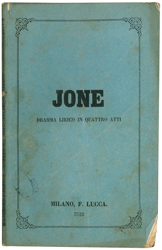 Jone. Dramma lirico in quattro atti di Giovanni Peruzzini. Musica del maestro Errico Petrella.