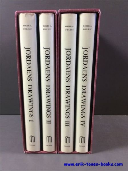 4 volume set in two slip - cases, bound, illustrated dustjackets, 180 x 265mm., 331pp. + pp.331 - 596 and VIII b/w plates + pp. 617 - 687 and 272 b/w illustrations + illustrations 273 - 636. books in very fine condition ! Development of Jordaens drawing style. Translated from the Dutch into English by P.S. Falla. Catalogue raisonne of 423 authentic drawings and cartoons, with 29 doubtful drawings, 118 copies and 42 wrongly attributed works. Excellent condition. !