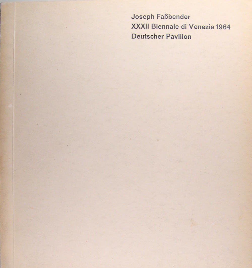 Catalogue 1964. Plaquette in/8 (21 x 19 cm) broché, couverture imprimée, 6 feuillets illustrés en noir, 5 feuillets de texte. Texte en français, anglais, allemand et italien. XXXII biennale di Venizia 1964 Deutscher pavillon. Joseph Fassbender : 1903 - 1974.