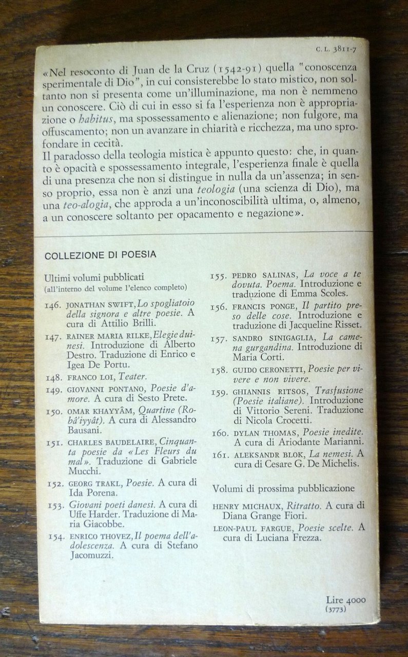 Juan de la Cruz,POESIE,1974 Rinaudi[introduzione e trad.Giorgio Agamben