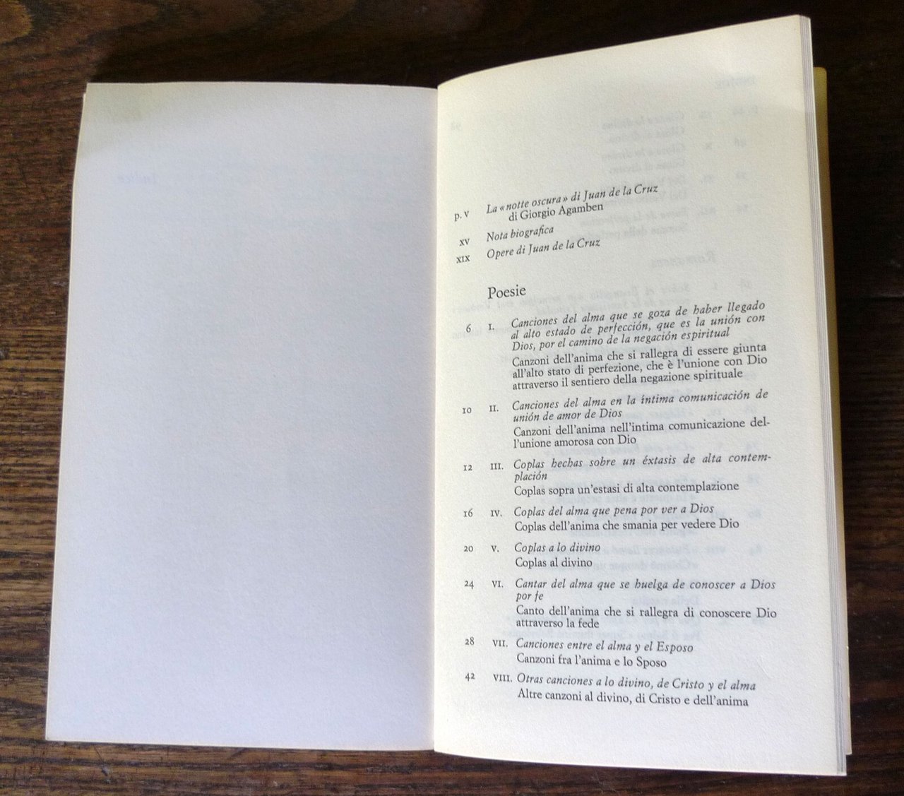 Juan de la Cruz,POESIE.Introduzione e traduzione di Giorgio Agamben.Giulio Einaudi editore, Torino 1974,seconda edizione,brossura, 18x10,5 cm., pp.XVII-98,testo originale spagnolo contraduzione italiana a fronte,COLLEZIONE DI POESIA / 109,peso: g.300cod.9327CONDIZIONI DEL LIBRO: buone,copertina ingiallita,piega alla copertina e alle pagine,dedica alla prima pagina
