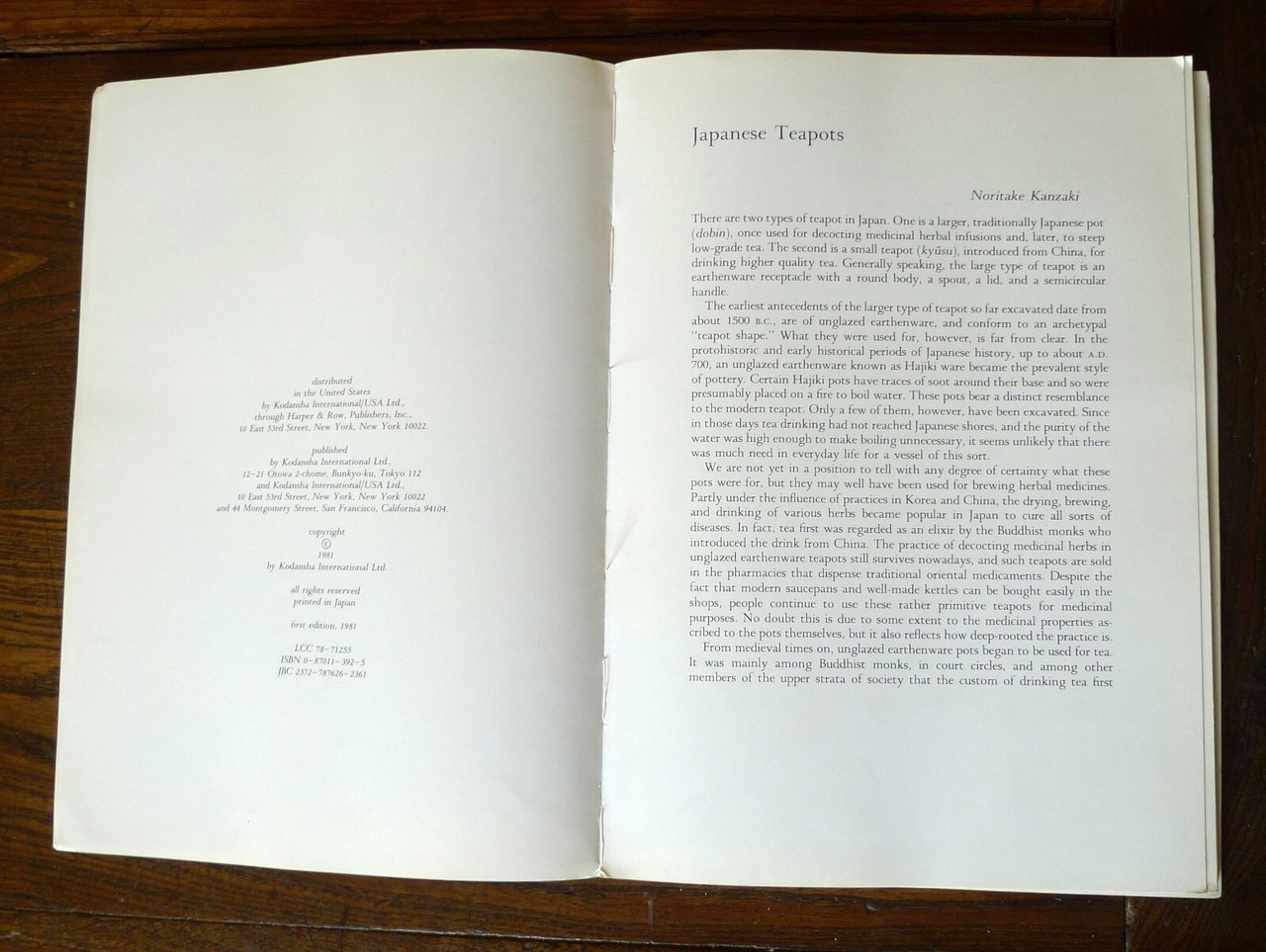 Kanzaki/Suganuma,JAPANESE TEAPOTS,1981 Kodansha[teiere giapponesi