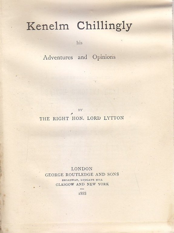 KENELM CHILLINGLY HIS ADVENTURES AND OPINIONS di Lord Lytton 1888 Libro Antico