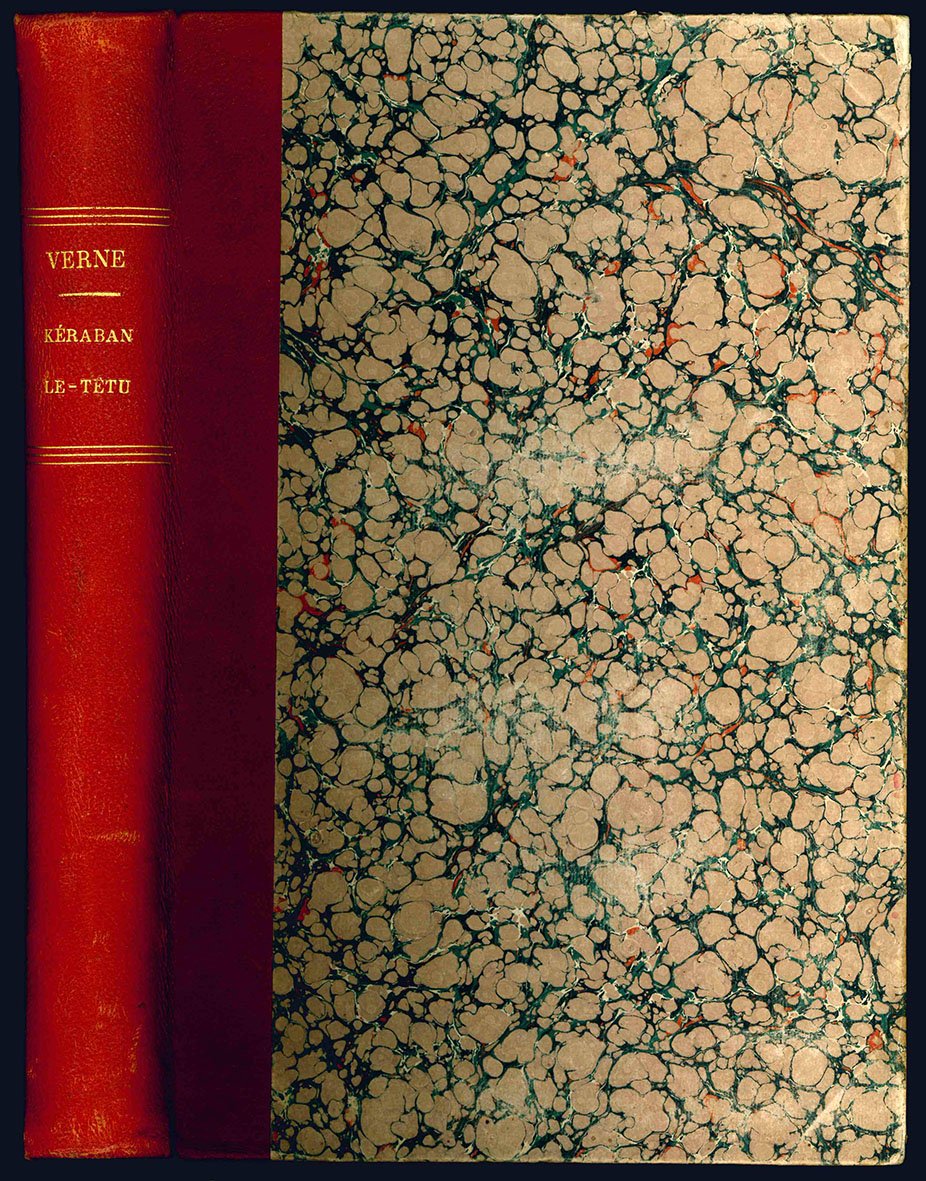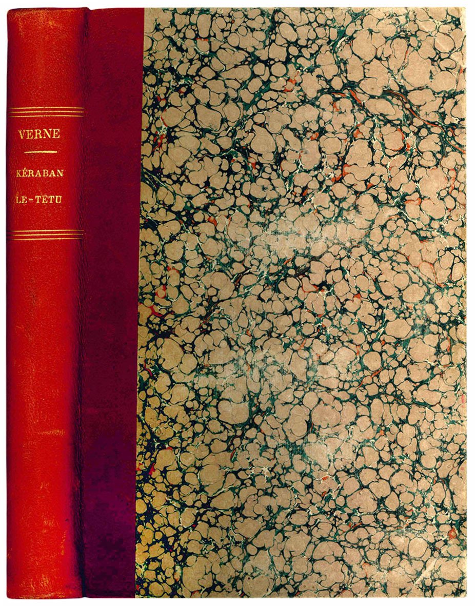 In 8° gr. (mm 284x188); pp. (4), 410 e 8 pagine del Catalogo Hetzel, dal quale si ricava la data di questa edizione, che risulta peratanto originale ed in prima tiratura, con le illustrazioni molto nitide. Legatura in mezza pelle rossa posteriore con titolo e filetti in oro al dorso. Ottima copia intonsa, che conserva le copertine originali, anche se un po' sporche.