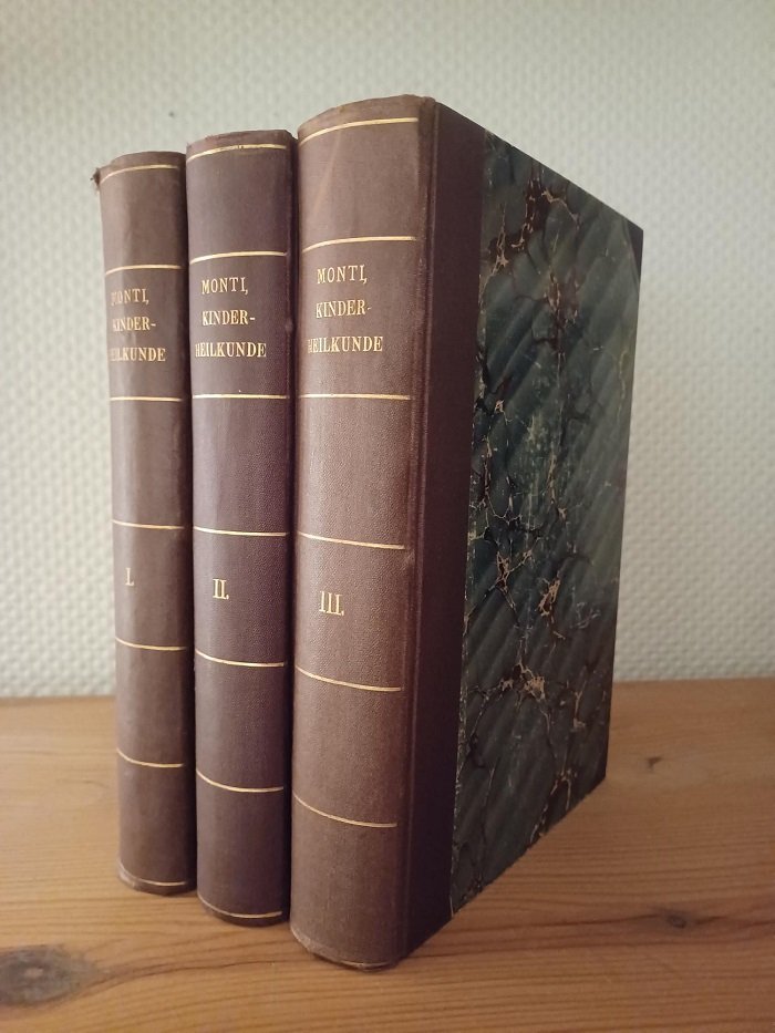 Alois Monti (* 13. 10. 1839 Abbiategrasso bei Mailand,Italien, † 30. 10. 1909 Wien) zählt zu den bedeutendsten Förderern der Kinderheilkunde. - Siehe Hirsch/Hübotter IV,252 f. und Pagel 1153 ff. Die Vorträge erschienen zuerst in einzelnen Heften in Folge seit 1897ff. Mit insgesamt 41 Abbildungen nach Holzschnitten.