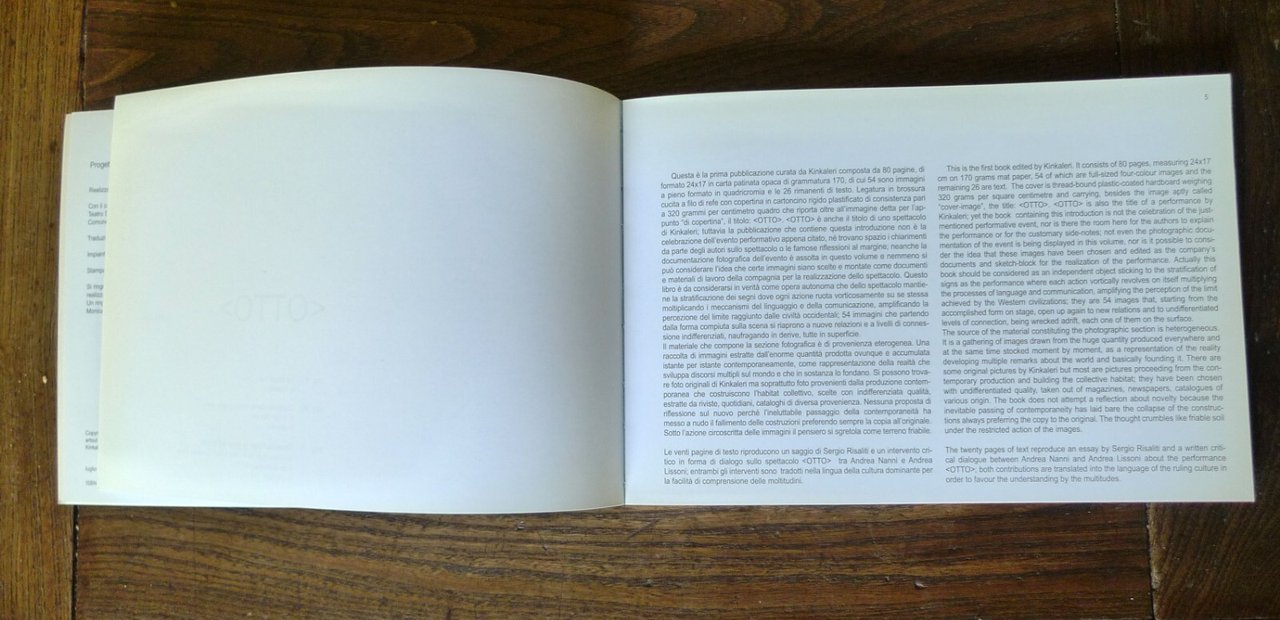 Kinkaleri,<OTTO>.Artout / M6M / Maschietto&ditore, Firenze 2003,brossura, 24x16,5 cm., pp.80,illustrazioni in nero e a colori,testo in italiano ed inglese,ISBN: 88-88967-08-7,peso: g.400cod.9420CONDIZIONI DEL LIBRO: come nuovo