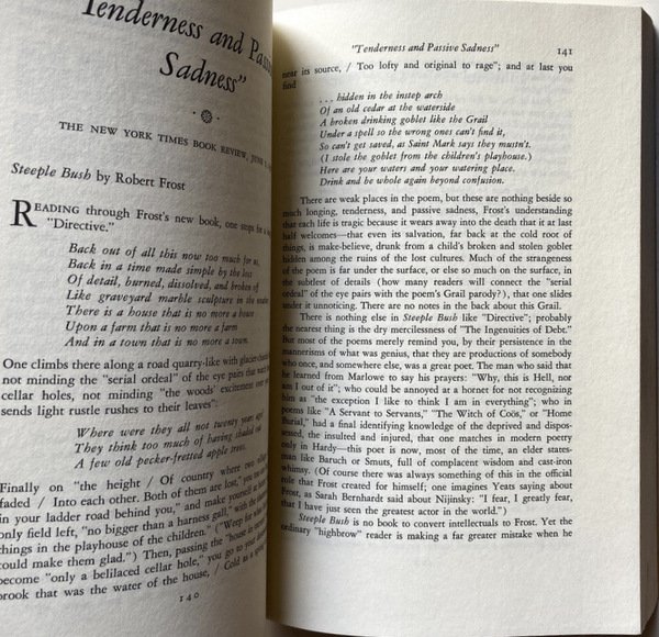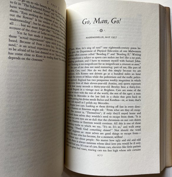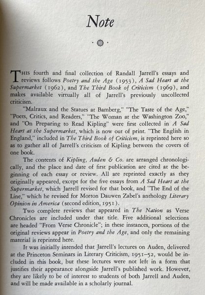 La quarta e ultima raccolta di saggi e recensioni di Jarrell riflette tutte le sfaccettature del talento del poeta. Contiene praticamente tutte le critiche che non sono state raccolte nei tre volumi precedenti, Poetry and the Age (1953), A Sad Heart at the Supermarket (1962) e The Third Book of Criticism (1969). I suoi argomenti vanno dalla critica della poesia a Ernie Pyle come reporter di guerra e alla gioia di possedere un'auto sportiva.