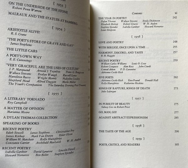 Soggetti/Subjects: Essays, American Poetry, Literary Criticism, Theory, Contemporary poets, Kafka, Frost, Yeats, Eliot, Wystan Hugh Auden, W. H. , 1907-1973, Interpretation, Rudyard Kipling, 1865-1936, American literature, History, English literature, Poetry in English, 1900, Critical studies, 20th century, Livre, Drama, Collection, Anthologies, Reviews, Lectures, Ellen Glascow, Dylan Thomas, Muriel Rukeyser, Robert Graves, Reuel Denny, Archibald McLeish, Kenneth Patchen, Walter Roberts, Florence Becker, William Bacon Evans, Elder Olson, Joyce Kilmer, Sidney Salt, J. Calder Joseph, Conrad Aiken, Ezra Pound, Witter Bynner, Leonard Bacon, Frederic Prokosch, Marya Zaturenska, Jan Karski, Ruth Pitter, Oscar Williams, Arnold Stein, Stanton A. Coblentz, Robert Frost, Karl Shapiro, Bertold Brecht, Cummings, Wilfred Owen, Marshall Schacht, Nemerov, Nims, Hayes, Elizabeth Coatsworth, John Ciardi, Katherine Hoskins, Donald Hall, Adrienne Cecile Rich, Rolfe Humphries, Robert Conquest, Alan Ross, Emily Dickinson, Elizabeth Bishop, Louis Simpson, Isabella Gardner, Robert Graves, Stephen Spender, B.H. Haggin, Hamilton Basso, Arnold J. Toynbee, Wright Morris, Wallace Stevens, Youth's Companion, Merle Miller, Alfred Duggan, Shepherd Mead, Evelyn Vaugh, Malcolm Cowley, Marianne Moore, Roy Campbell, Edith Sitwell, James Kirkup, Ben Belitt, Jules Laforgue, Out of Print Books, Anglo-Saxon Culture, Poetic Collections, Poems, Texts, Reviews, Collectibles, Literary Saggi, Poesia americana, Critica letteraria, Teoria, Poeti contemporanei, Interpretazione, Letteratura americana, Storia, Letteratura inglese, Poesia in inglese, Critical studies, 20th century, Teatro, Drammaturgia, Libri Vintage Fuori Catalogo, Cultura anglosassone, Raccolte poetiche, Poesie, Testi, Recensioni, Collezionismo, Collezioni letterarie