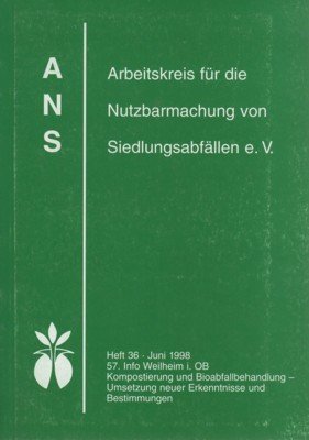 Kompostierung und Bioabfallbehandlung : Umsetzung neuer Erkenntnisse und Bestimmungen ; in Weilheim i.OB im Juni 1998. [ANS, Arbeitskreis für die Nutzbarmachung von Siedlungsabfällen e.V.]. Schriftl. Hermann Otto Hangen, Arbeitskreis für die Nutzbarmachung von Siedlungsabfällen: Schriftenreihe des ANS ; H. 36; Arbeitskreis für die Nutzbarmachung von Siedlungsabfällen: Informationsgespräch des ANS ; 57.