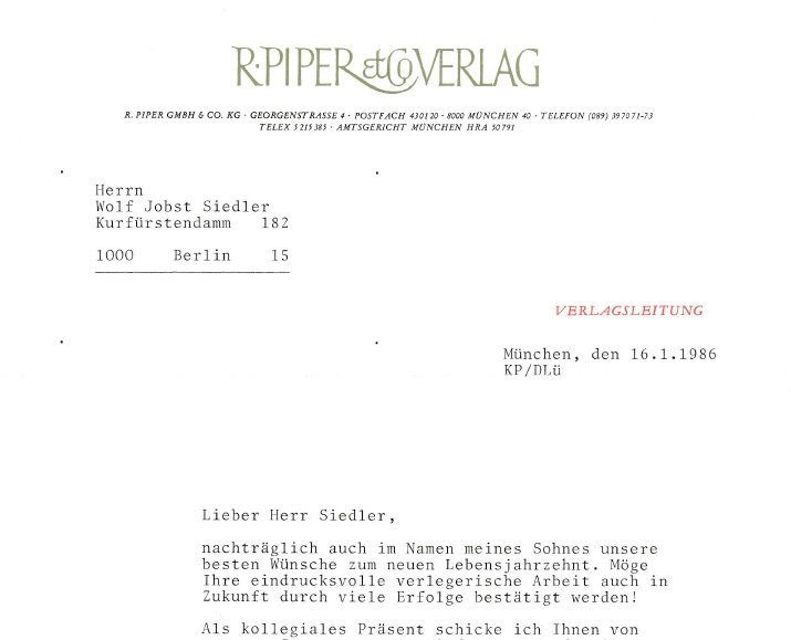 Konvolut von 26 Schreiben west- und ostdeutscher Verleger an ihren Berliner Kollegen Wolf Jobst Siedler.